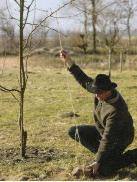 Een eenvoudige methode om jonge takken te forceren tot bloei en een betere oogst, is om de jonge buigzame uitlopers (liefst eenjarige takken) in september in een stand van maximaal 45 graden te buigen. De tak zet je vast met een tauw aan een steen, die je op de grond legt. Na drie weken is de tak al in de juiste positie gegroeid en kan de steen met het touw weer worden weggehaald. De gebogen takken zullen nu meer bloemknoppen gaan vormen.