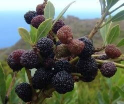 Kuipplant. Struik of kleine boom uit Macronesië. Vooral aantrekkelijk vanwege de kleine, zwarte, braam-achtige vruchtjes.