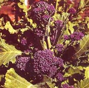 Winter-broccoli, geeft een overvloed aan purperen knoppen. Oogstbaar van februari tot april in het jaar volgend op de zaai.
