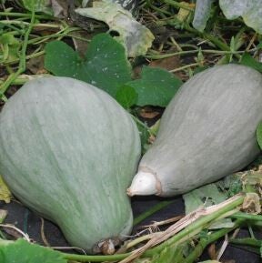 Unusual for both its pear shape and its grayish blue color, this banana squash is valued for its excellent taste and for its firm rind. Keeps well over the winter.