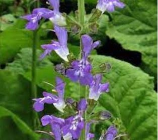 this tough plant makes whorls of widely spaced, but very showy, violet-blue, two-lipped flowers on long stems with white streaks and yellow markings on the lower lip. The foliage of dark green, thick leaves, makes a large, ground covering, basal clump