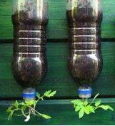 Om ecologischer bijvoorbeeld tomaten en aardbeien te kweken, kan je uit petflessen hangpotten maken. Snijd het bovenste deel van de fles. Ga verder aan de slag met de bodem. Maak een gat in de bodem en steek het plantje er omgekeerd door. Vul de onderkant op met grond. Hang de halve petfles nu met ijzerdraad op. Nu kan het plantje hangend naar omlaag groeien. Zo heb je geen stokken nodig om je plantjes te ondersteunen. Vergeet ze alleen geen water te geven!