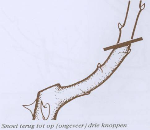 Het is daarom beter het weer en de plant in het oog te houden om bij de eerste tekenen van ontwaken met de snoei te beginnen. Zodra de sapstroom weer op gang komt, wat je kunt zie aan het opzwellen van de knoppen, begin je met snoeien.